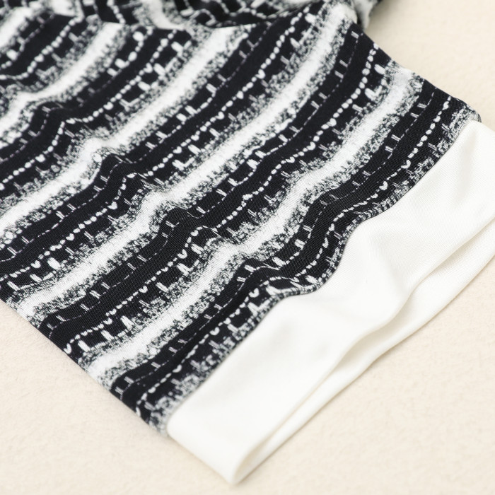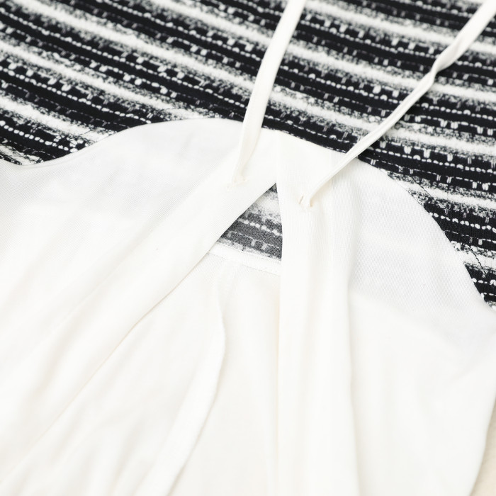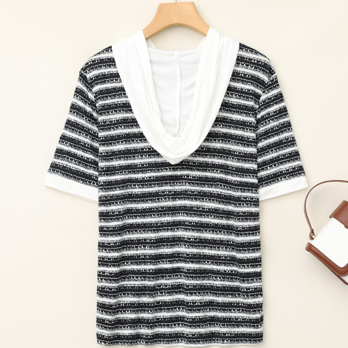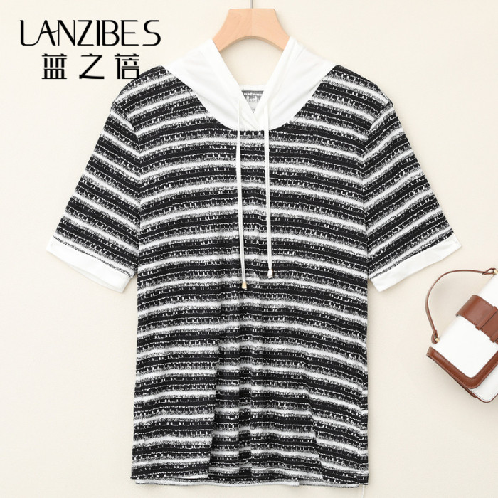 真絲針織條紋連帽T恤衫女桑蠶絲運動衛衣短袖D9782