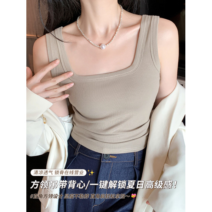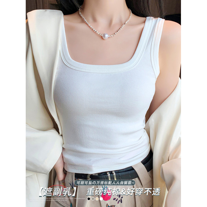 颯擼/寬肩吊帶背心女內搭夏季新款女士黑白工字帶胸墊外穿打底衣