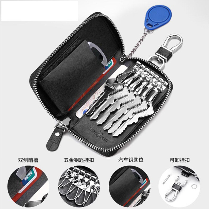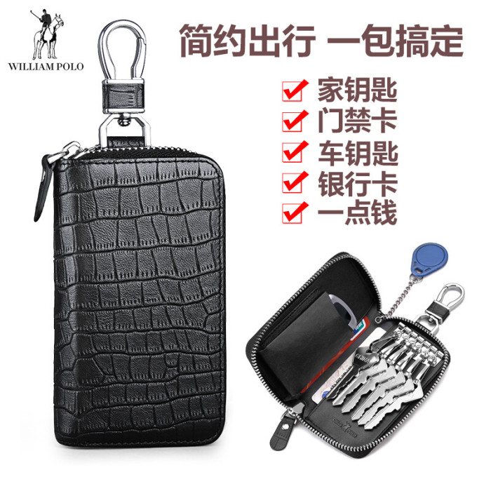 英皇保羅真皮男士鑰匙包腰掛牛皮拉鍊鎖匙包大容量多功能迷你卡包