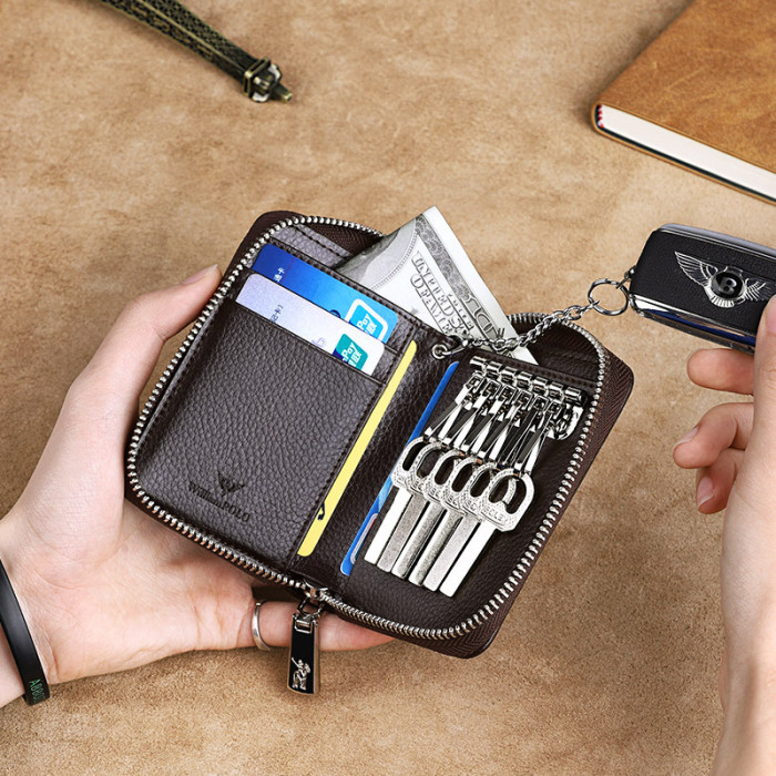 英皇保羅鑰匙包男士真皮牛皮多功能汽車鑰匙商務零錢包卡包男