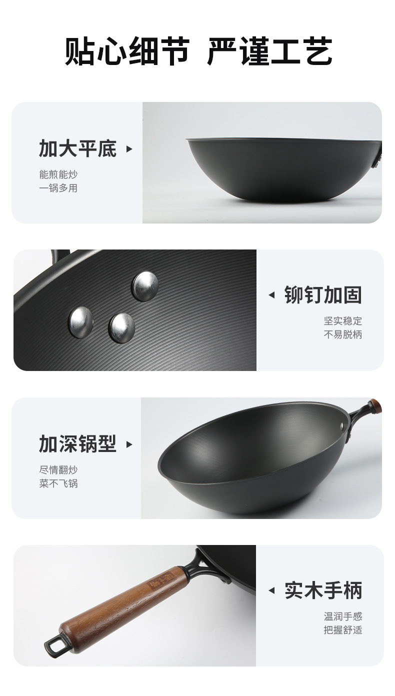 張小泉鐵鍋老式炒鍋家用炒菜鍋小型瓦斯爐專用無塗層瓦斯不沾鍋具