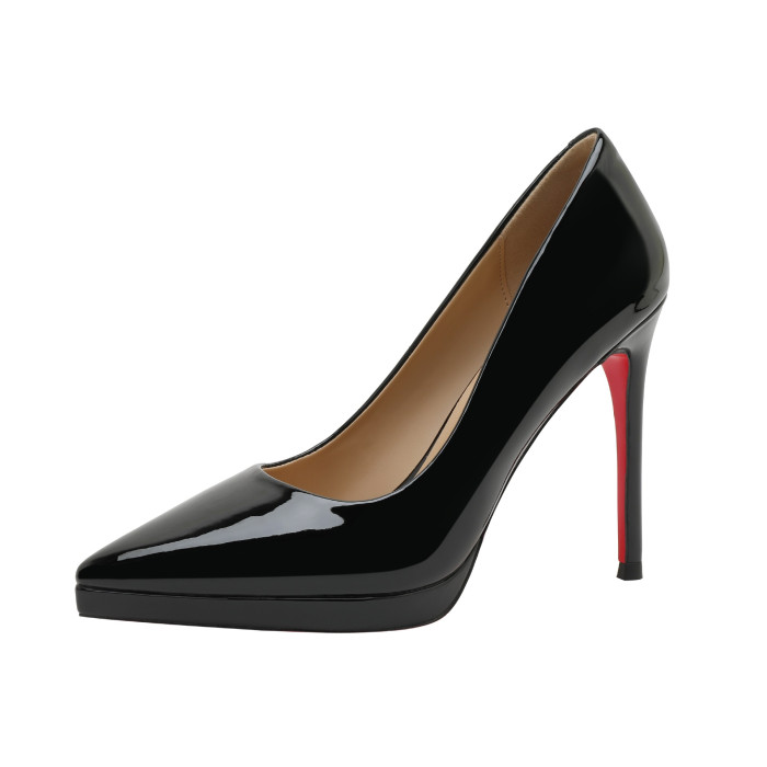 裸色防水台高跟鞋女細跟2025新款百搭氣質尖頭單鞋性感漆皮紅底鞋