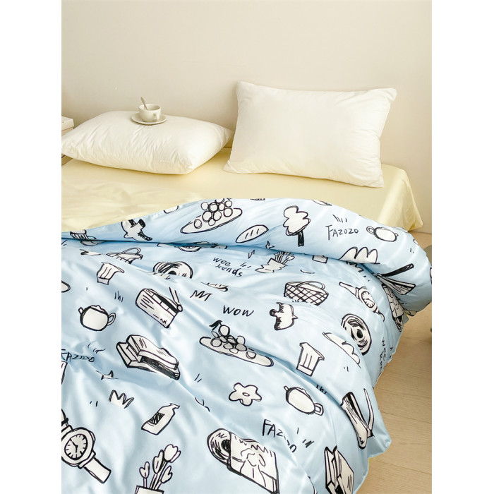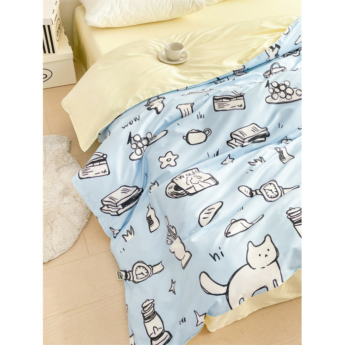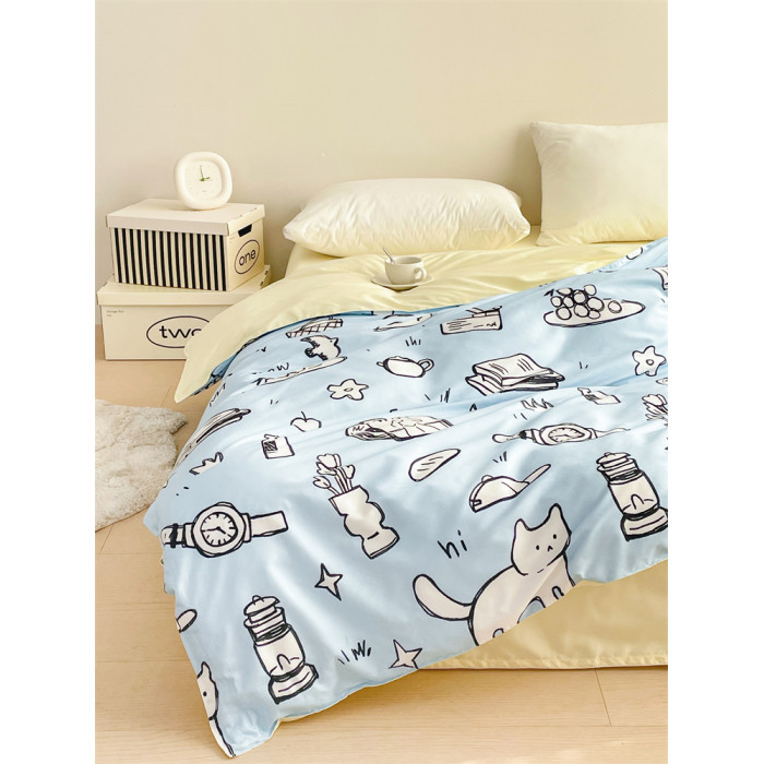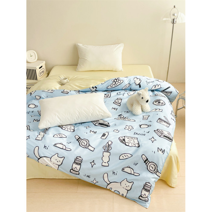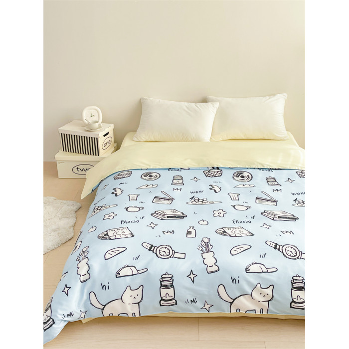 貓咪假期 卡通原創插畫風60支長絨棉貢緞被套被罩全棉單件