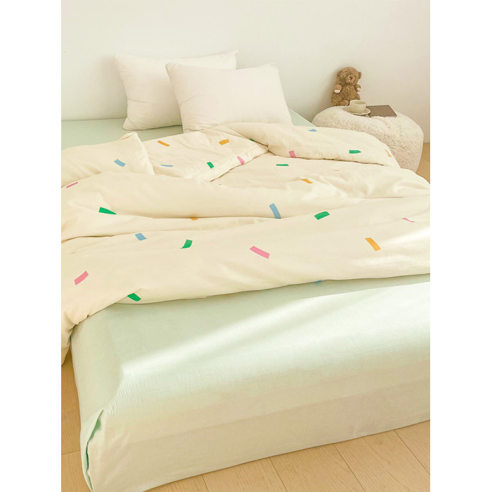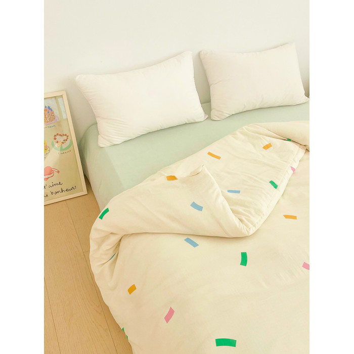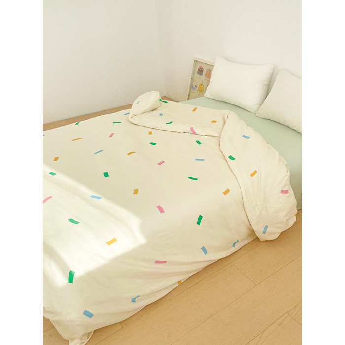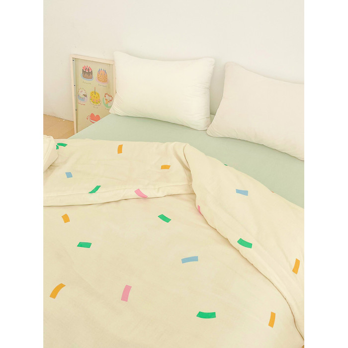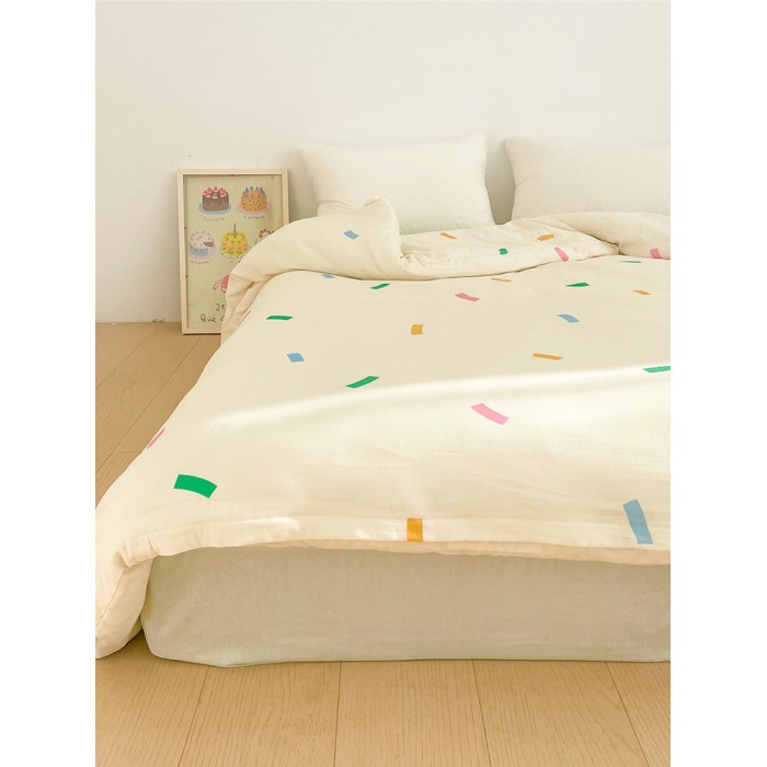 幸福出現時 小清新原創彩帶小插畫100全棉雙層紗被套被罩單件親膚
