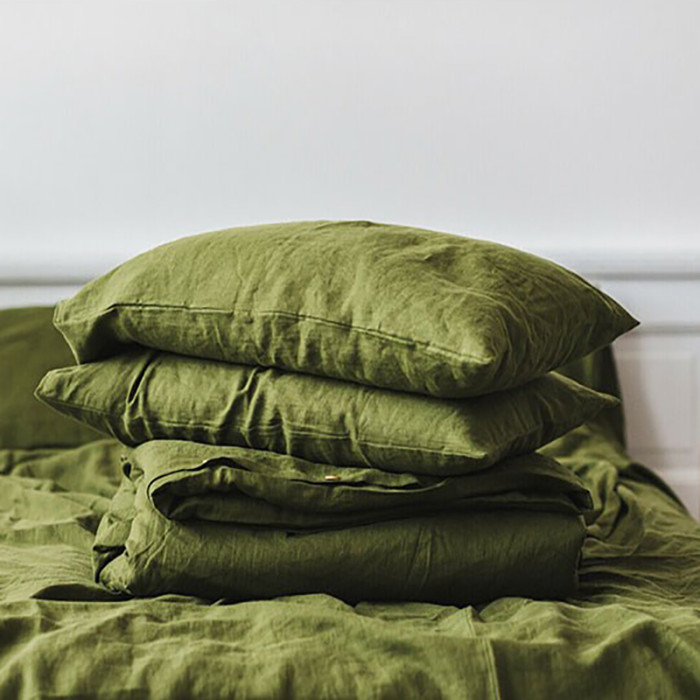 漢麻橄欖綠信封式枕套一對