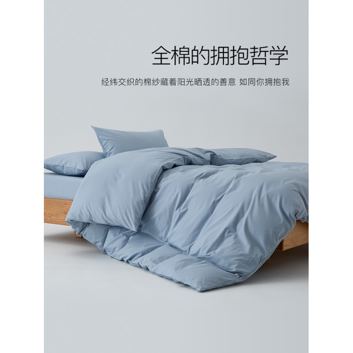 春夏A類簡約藍色全棉被套四件套單件150x200x230純棉單人宿舍被罩