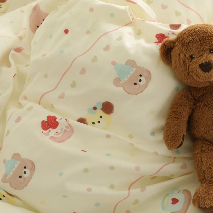 小熊生日母嬰級a類雙層紗被套120x150兒童被罩單件純棉全棉夏季天