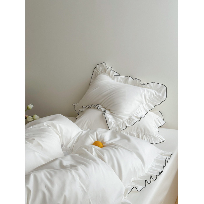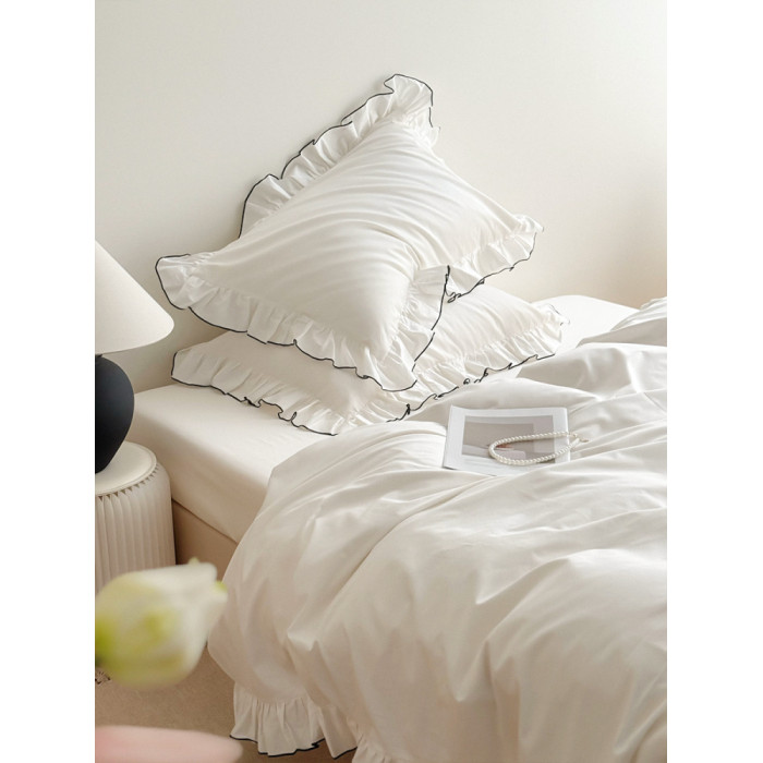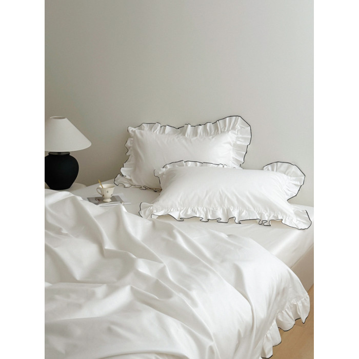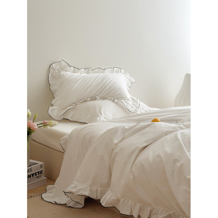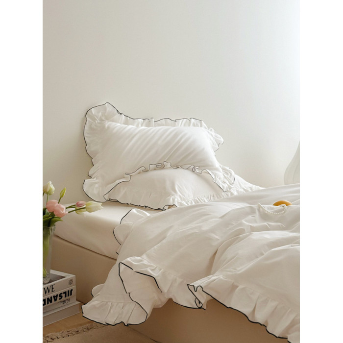 唯美白色荷葉邊純棉全棉被套單件1.8m床上三四件套宿舍單雙人被罩
