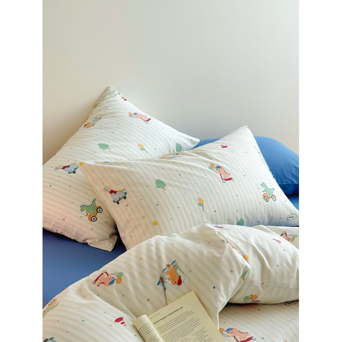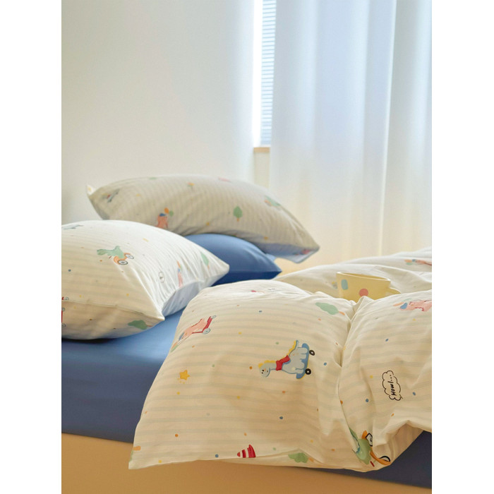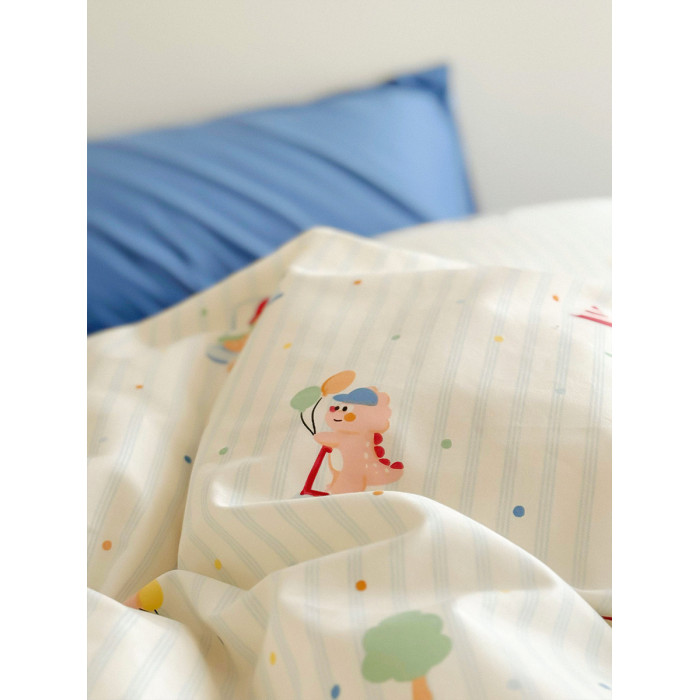 卡通小恐龍簡約條紋全棉純棉被套單件1.5m床上四件套宿舍被罩兒童