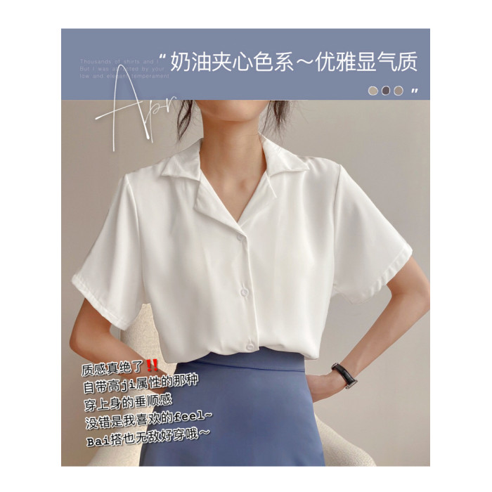 雪紡襯衫女短袖白襯衣通勤職業夏季白色職場面試秋季穿搭正裝上衣