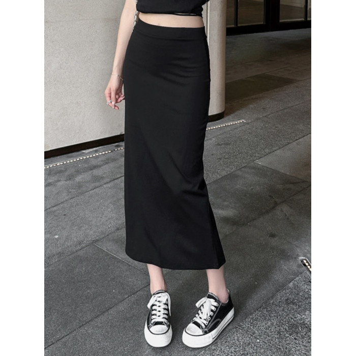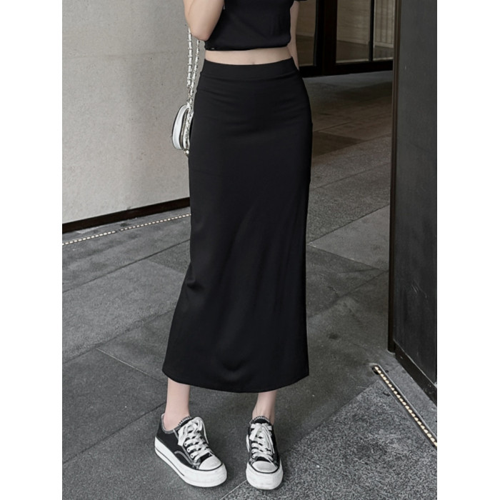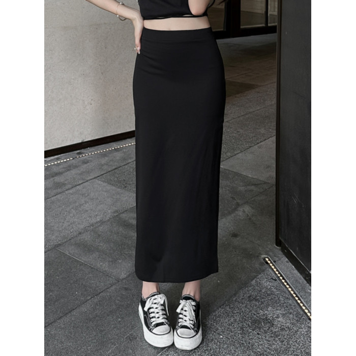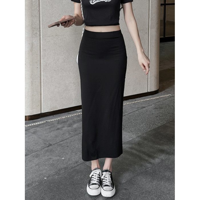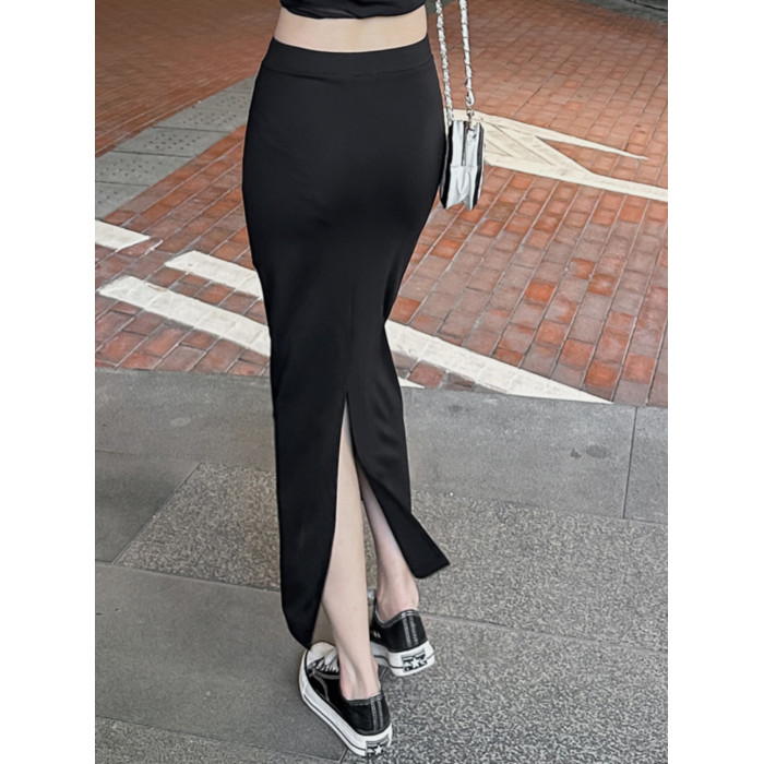 一步半身裙女夏季2025新款中長款小個子半身長裙高腰開叉包臀裙子