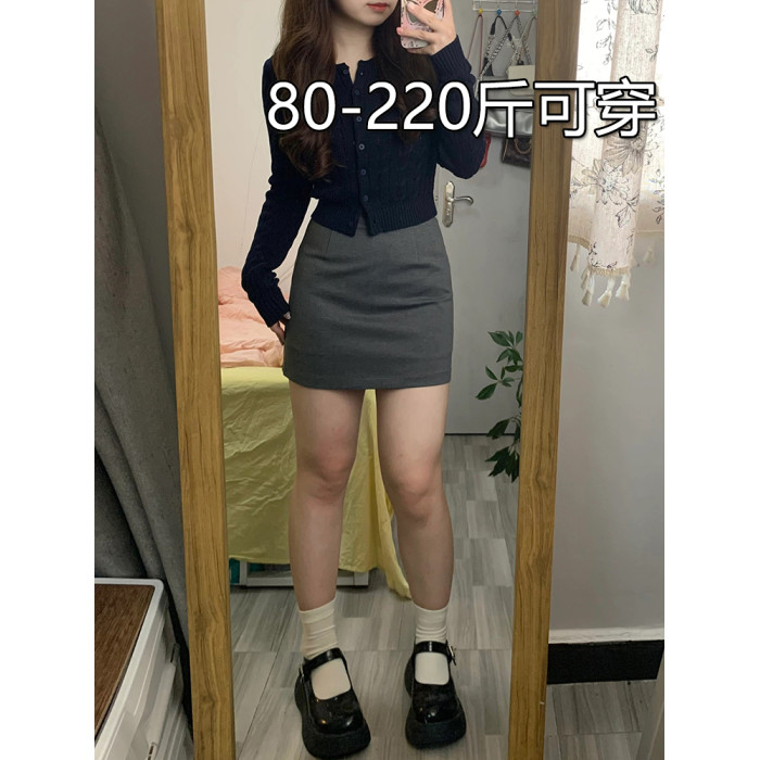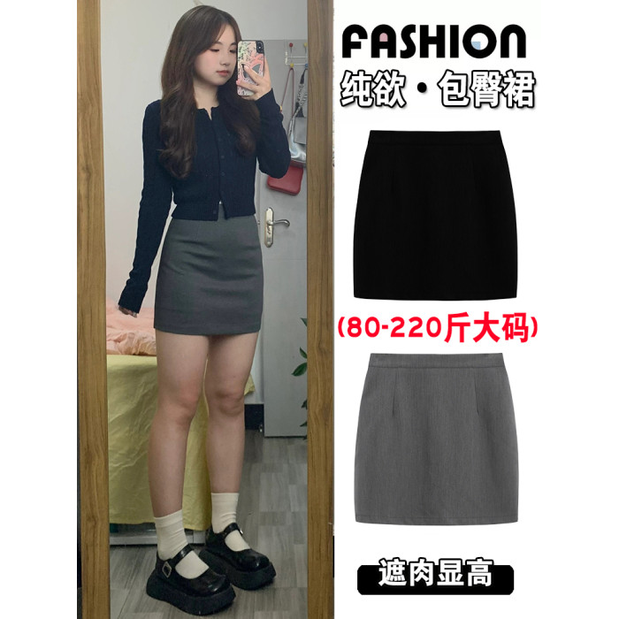 灰色性感包臀裙女夏季大碼緊身高腰顯瘦純欲辣妹OL短裙彈力一步裙