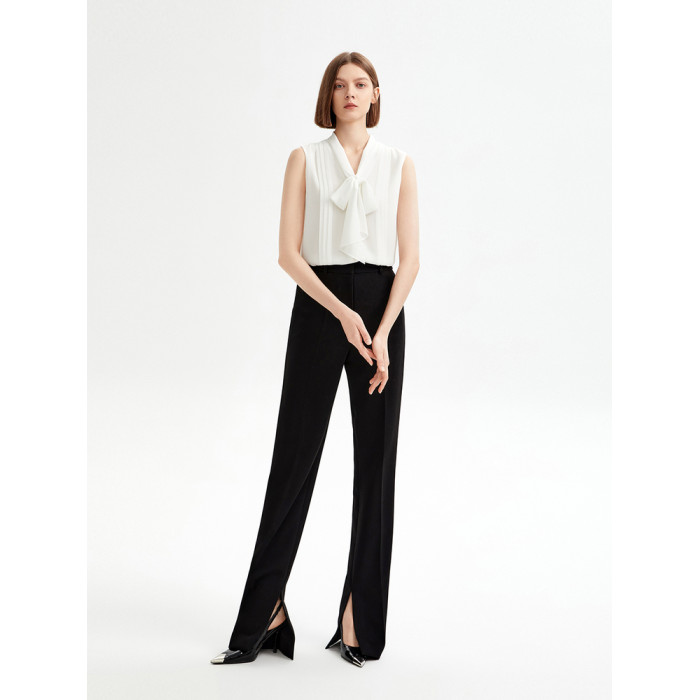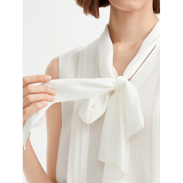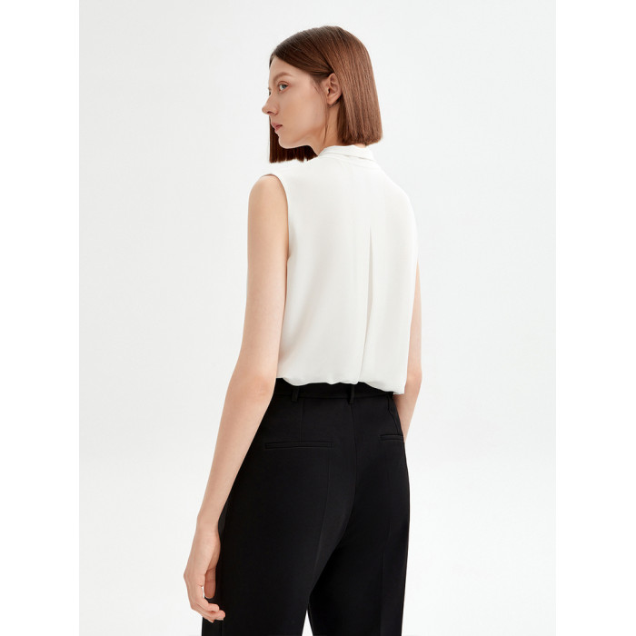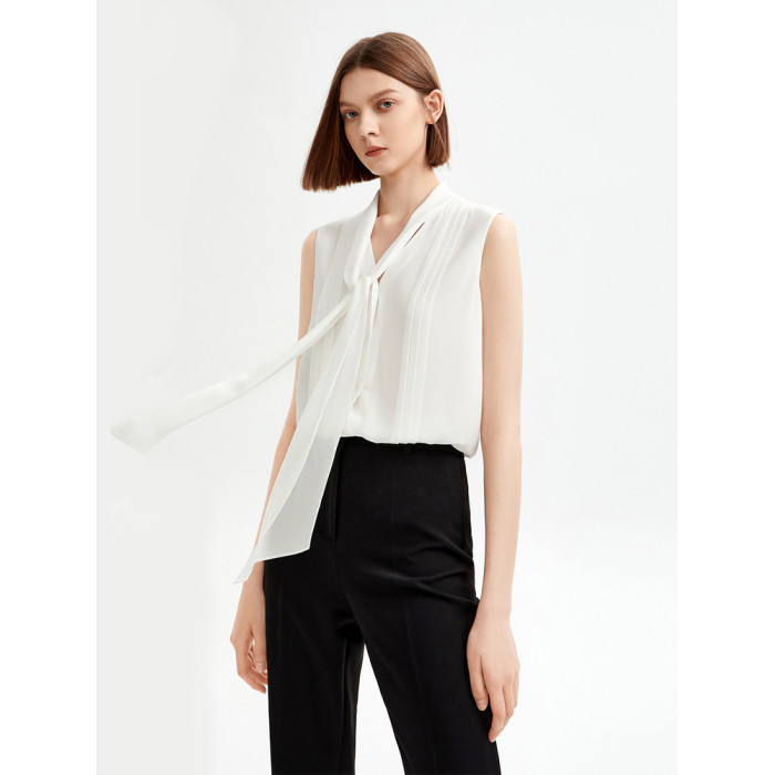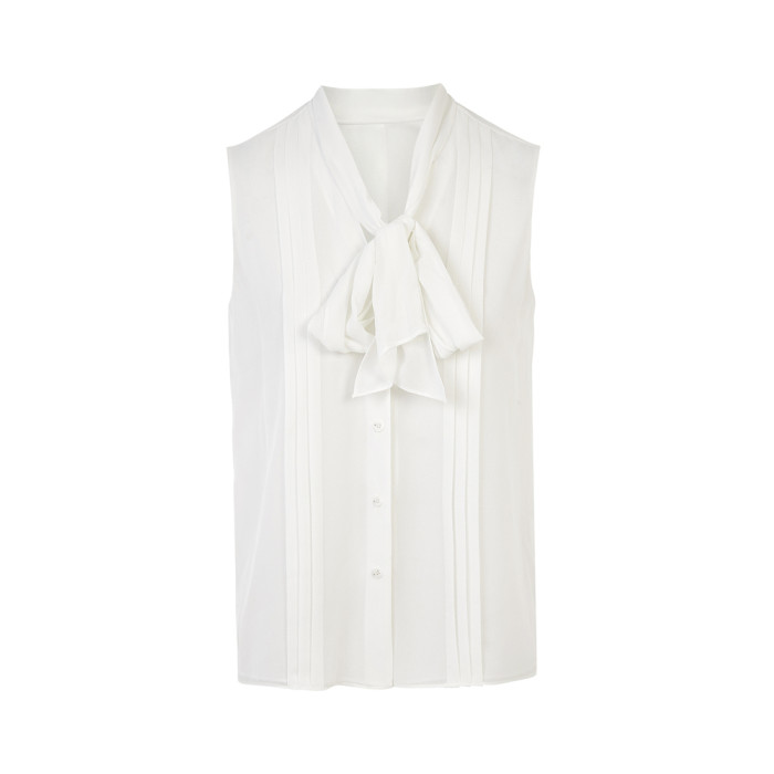 朗姿法式雪紡衫氣質休閒小衫無袖短款上衣襯衣女夏季新款白襯衫