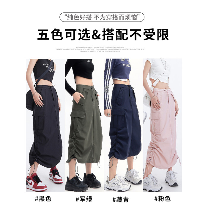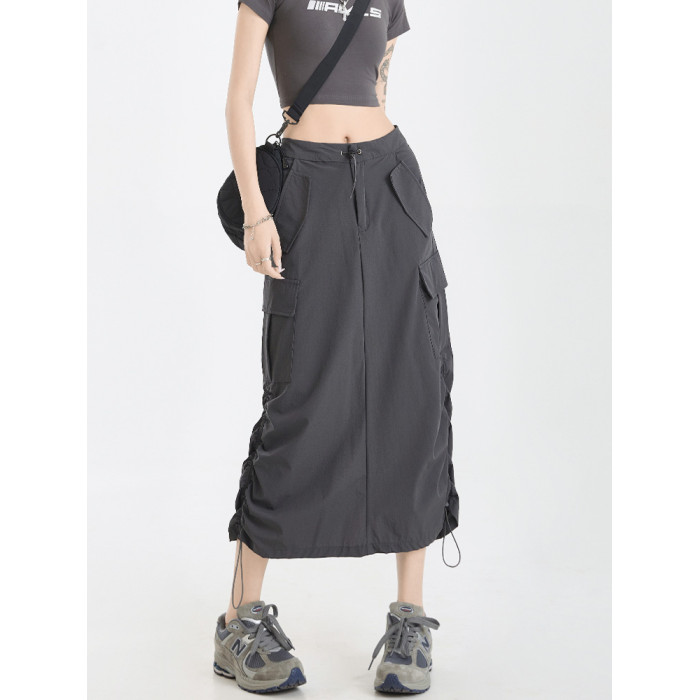 美式復古工裝裙女夏季2025新款高腰a字顯瘦中長款速乾灰色半身裙