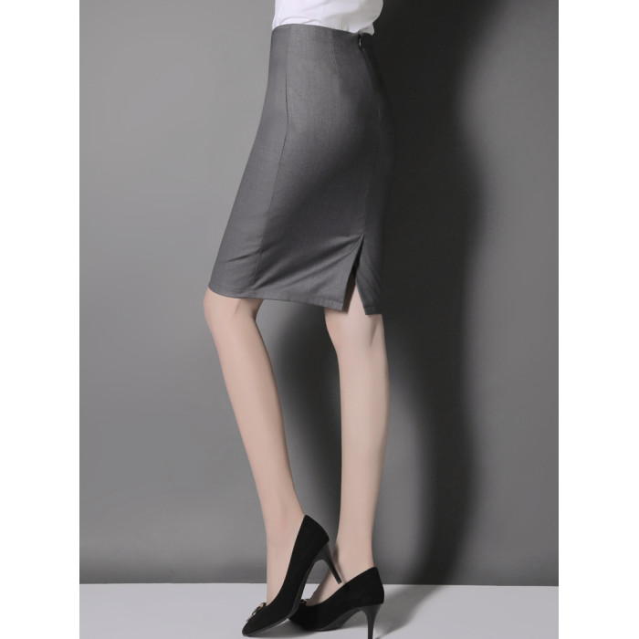 灰色半身裙女夏季西裝面料職業工作裙過膝面試一步裙中長款包臀裙