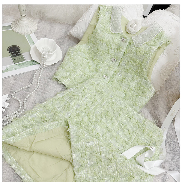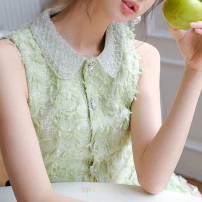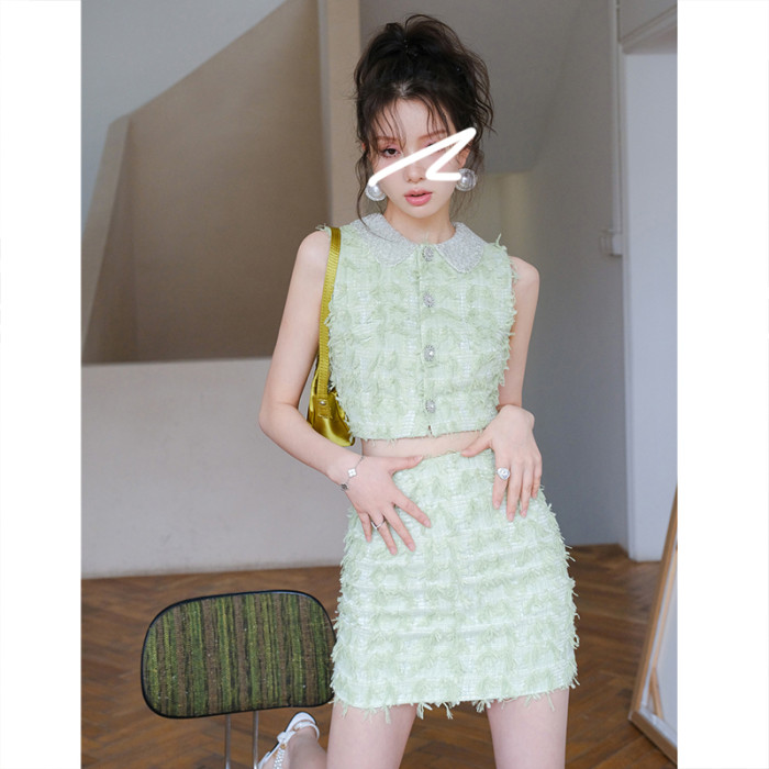 FFmiss◆小香風釘珠流蘇上衣短裙兩件套女夏季高級感時尚氣質套裝