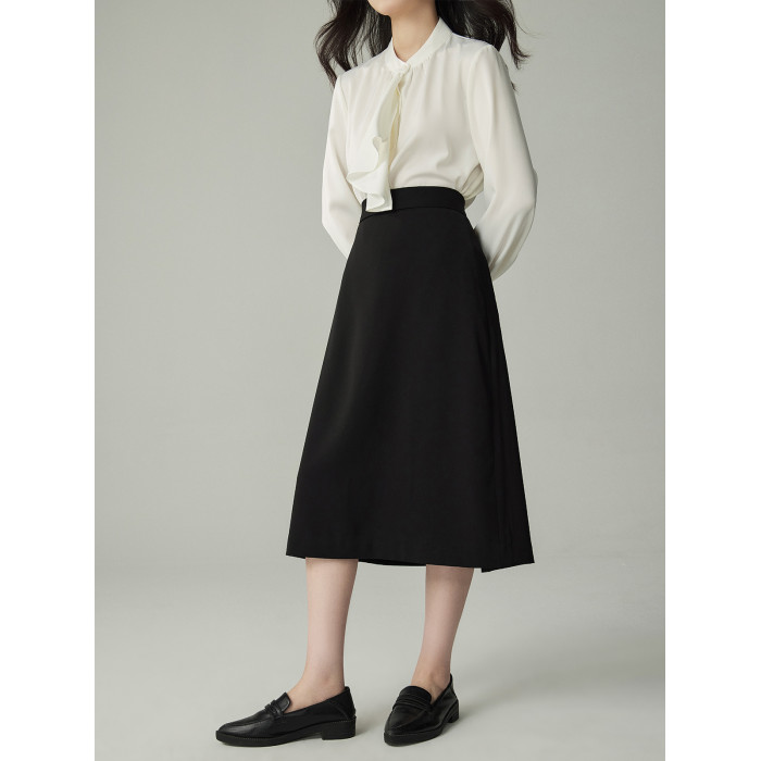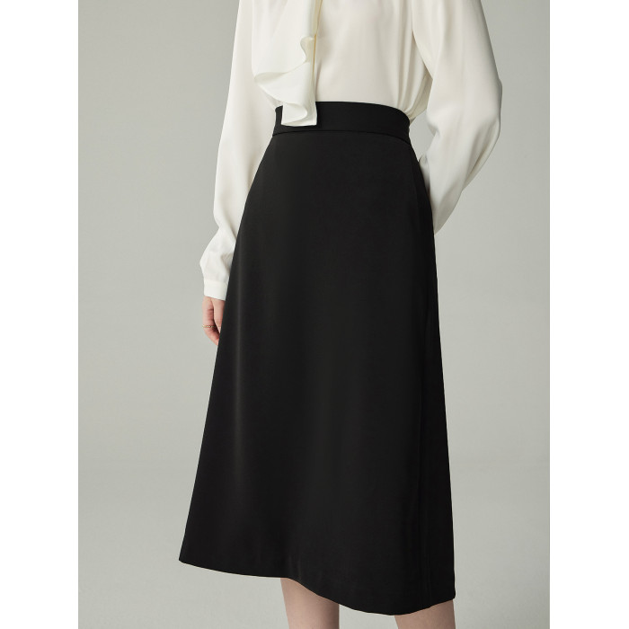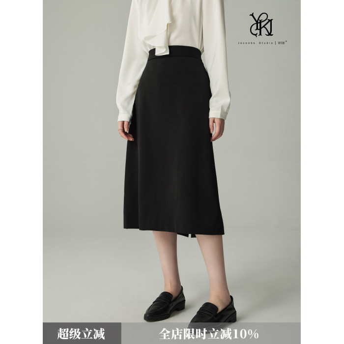 JACOOBS婭可家黑色高腰開叉半身裙女春秋面試職業正裝a字裙西裝裙
