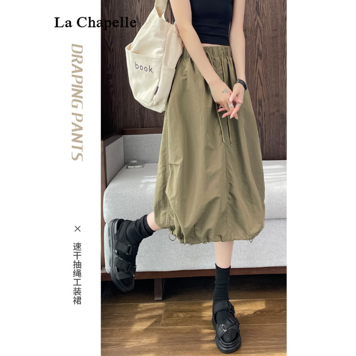拉夏貝爾美式速乾工裝裙女夏季高腰a字繖裙中長款蓬蓬花苞半身裙