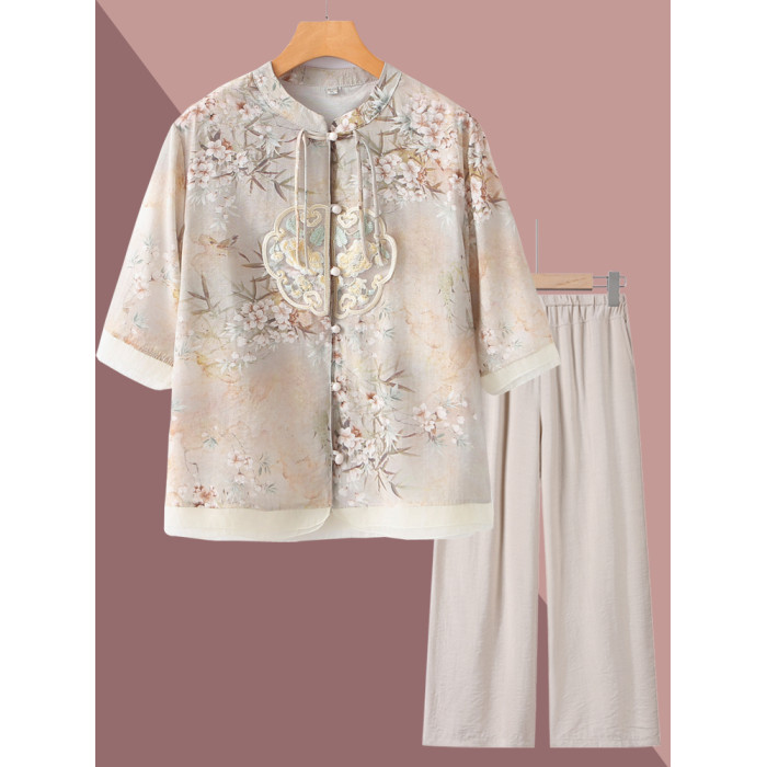 媽媽裝夏裝新款中式國風襯衫中老年人女裝短袖奶奶裝夏季洋氣衣服