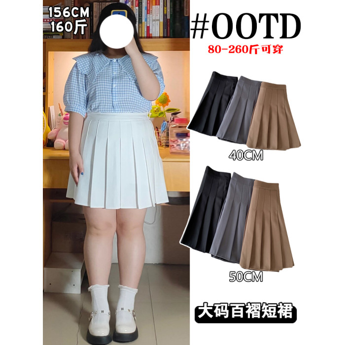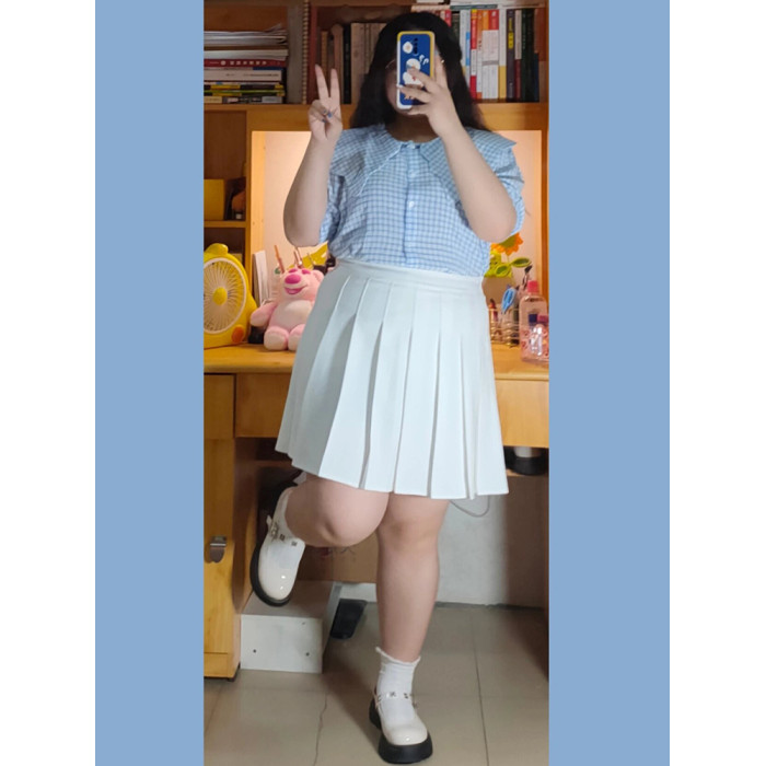 白色jk百褶裙加長高個子女春夏微胖大碼梨形顯瘦高腰a字短裙半裙