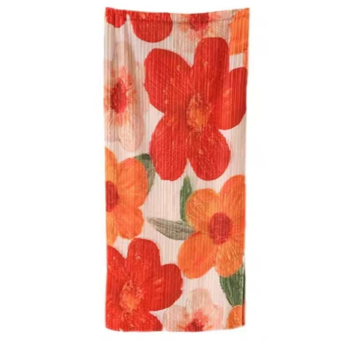三宅高級褶皺半身裙女夏季花色直筒裙氣質顯瘦高腰印花百褶長裙