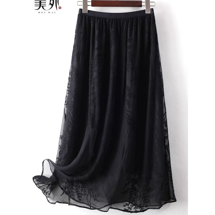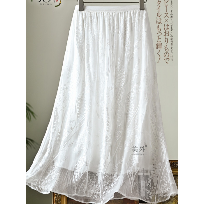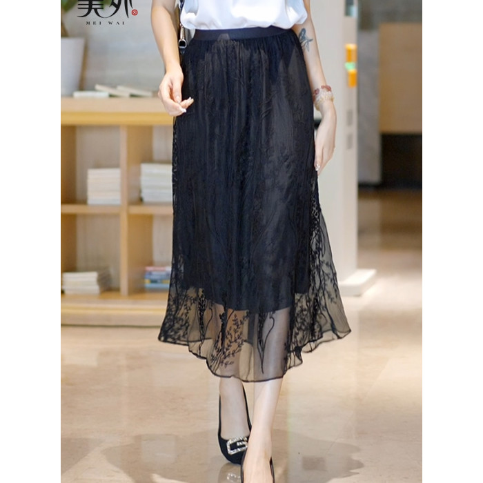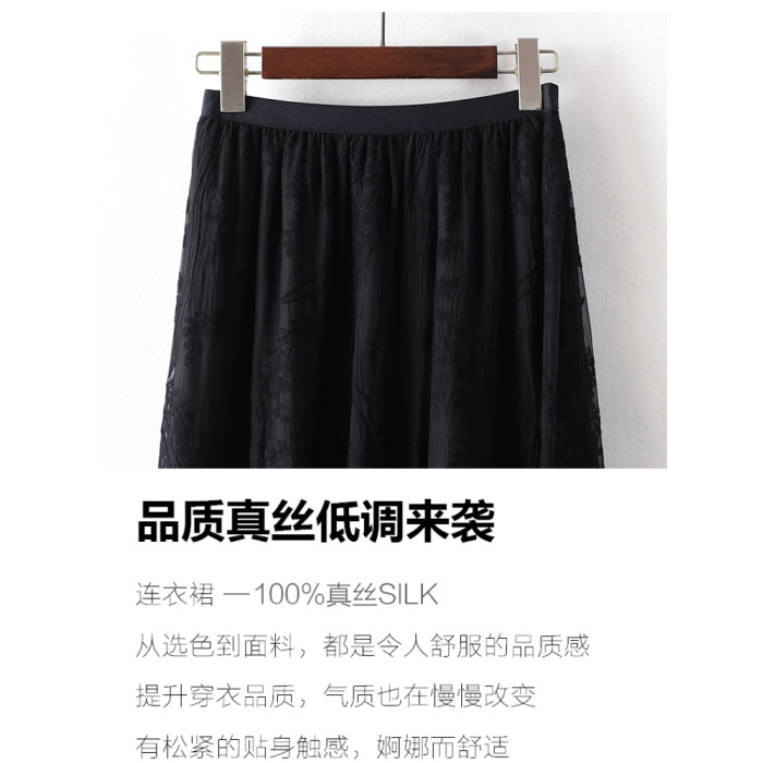 法式重工刺綉真絲半身裙新款桑蠶絲氣質裙子高腰顯瘦紗裙夏季2025