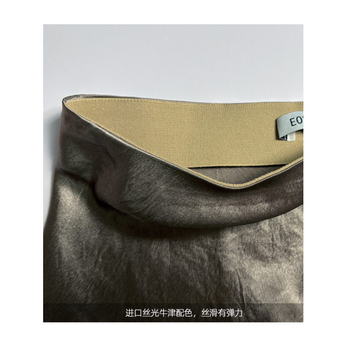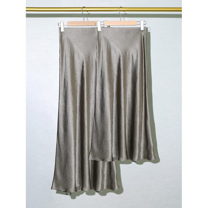 日本進口褶皺醋酸肌理感半身裙古銅灰中長裙顯瘦魚尾長裙a字裙女