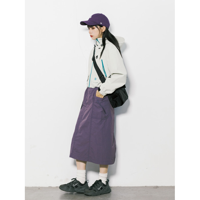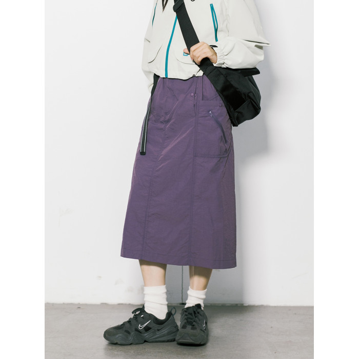 RCDB山系戶外A字中長款工裝風後開叉半身裙女防潑水露營休閒裙子