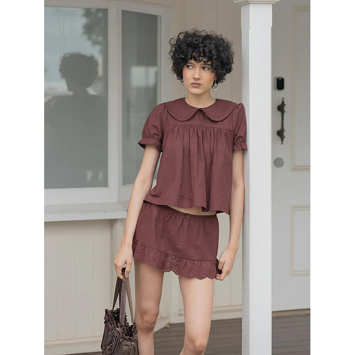 MY MUM MADE IT/MMMI 有機棉蝴蝶結蕾絲迷你短裙