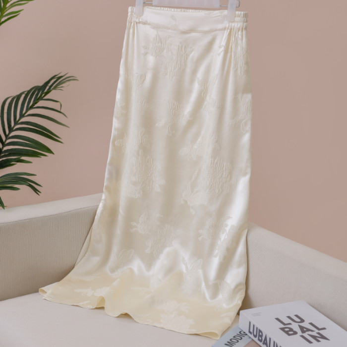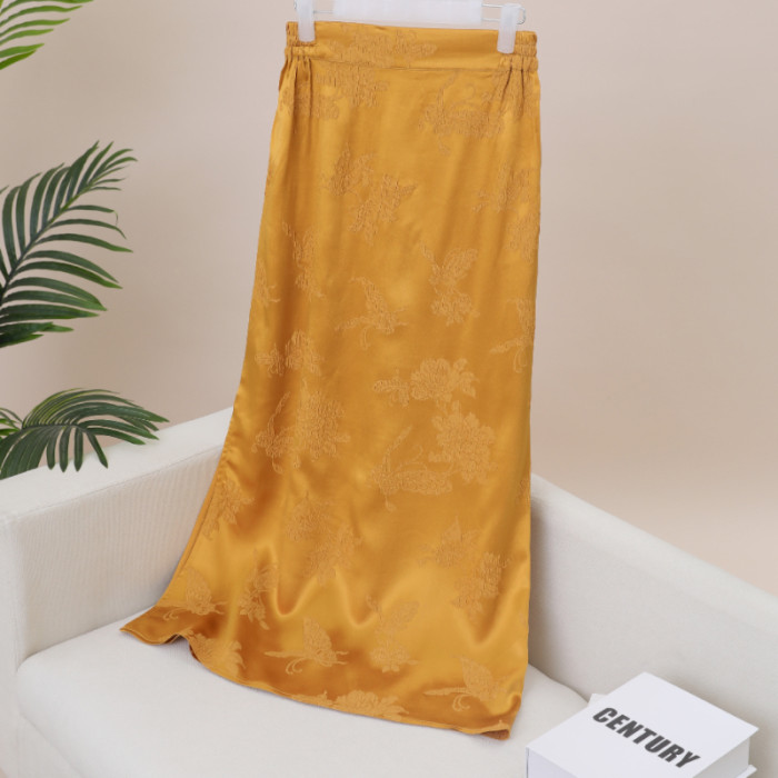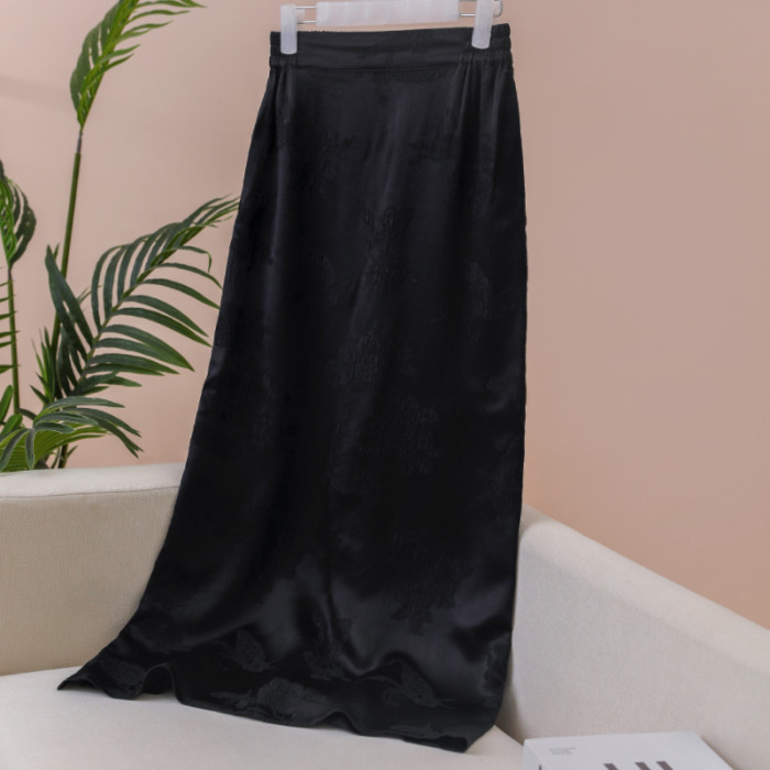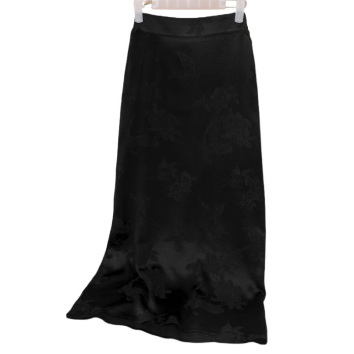 50姆米真絲包臀半身裙黑色包長裙高腰開叉復古顯瘦中長款一步裙