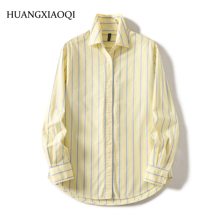 Huangxiaoqi Cowboy春秋純棉牛津紡竪條紋女士長袖襯衫打底衫襯衣