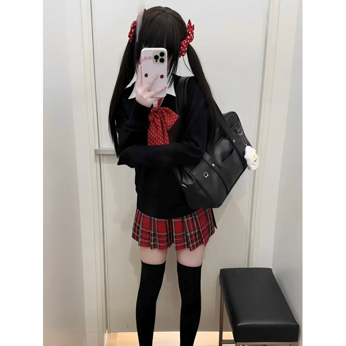 單件39厘米格裙+紅色波點領結