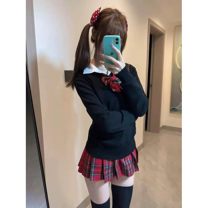 原創正版小辣椒jk製服套裝春秋日系校供感半身短裙百褶裙格子裙女
