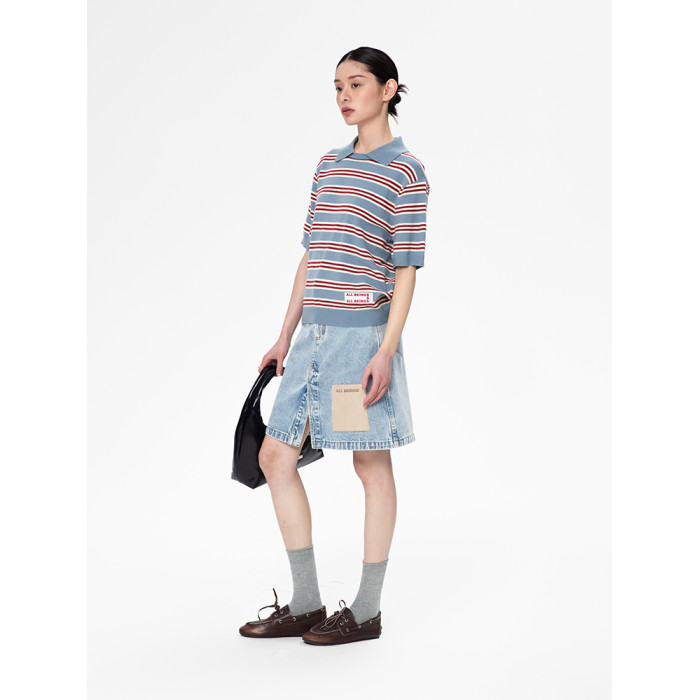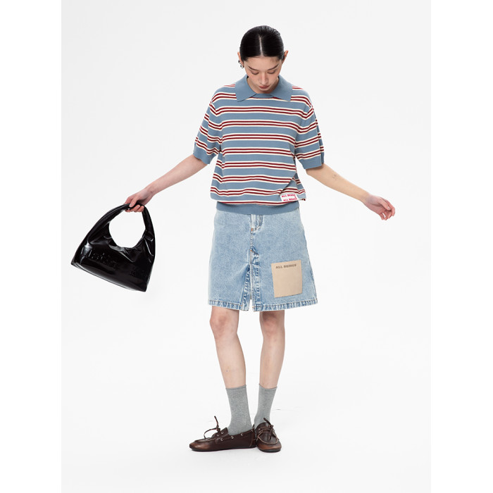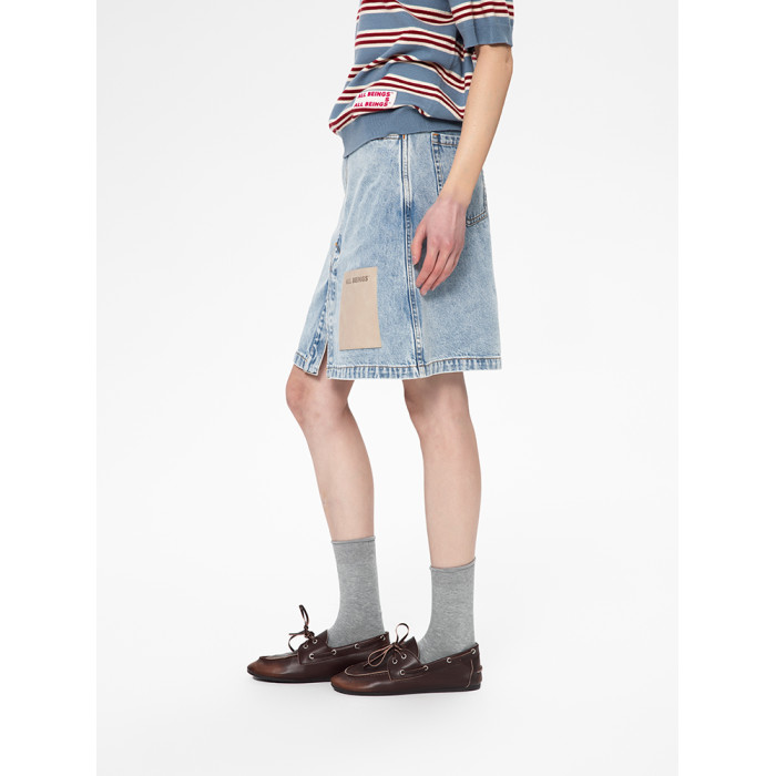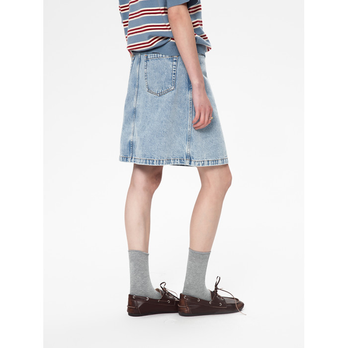 ALL BEINGS25SS春季設計師淺藍洗水牛仔開衩休閒百搭半身短裙女