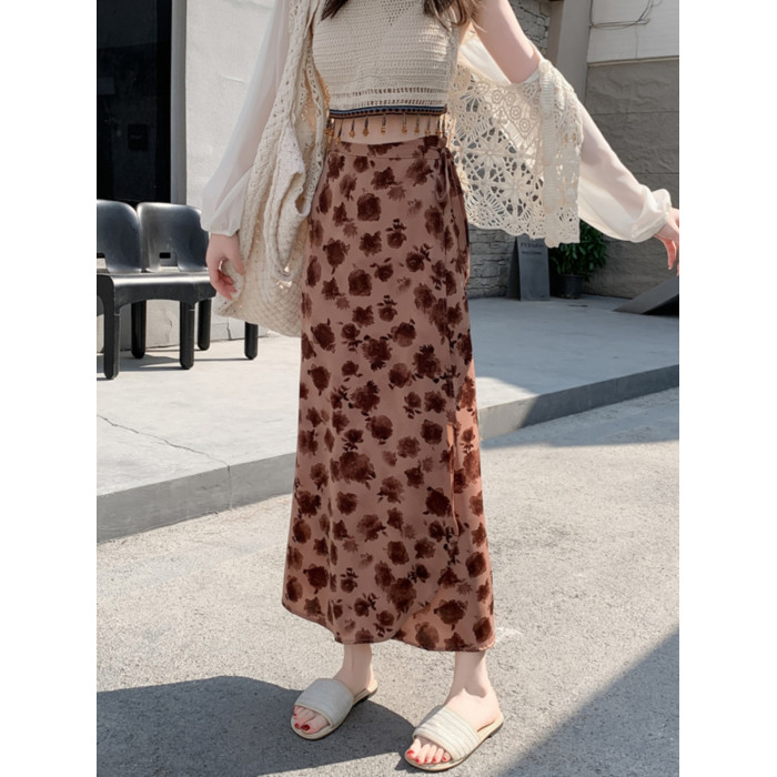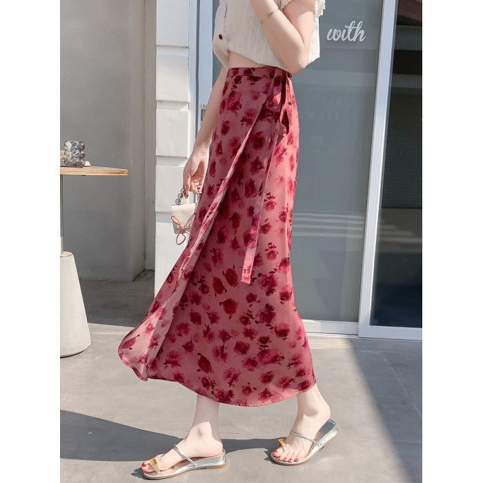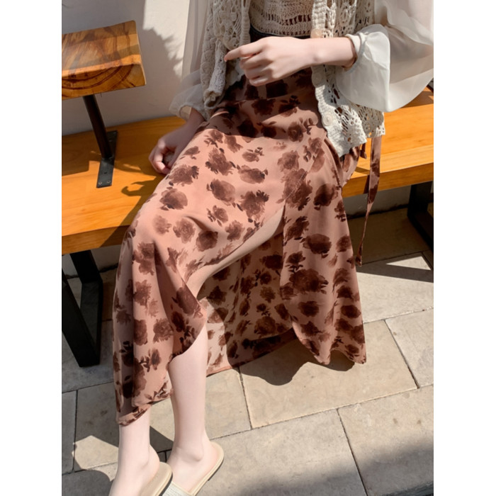 碎花半身裙女夏季2025新款波西米亞防曬裹裙一片式開叉雪紡包臀裙