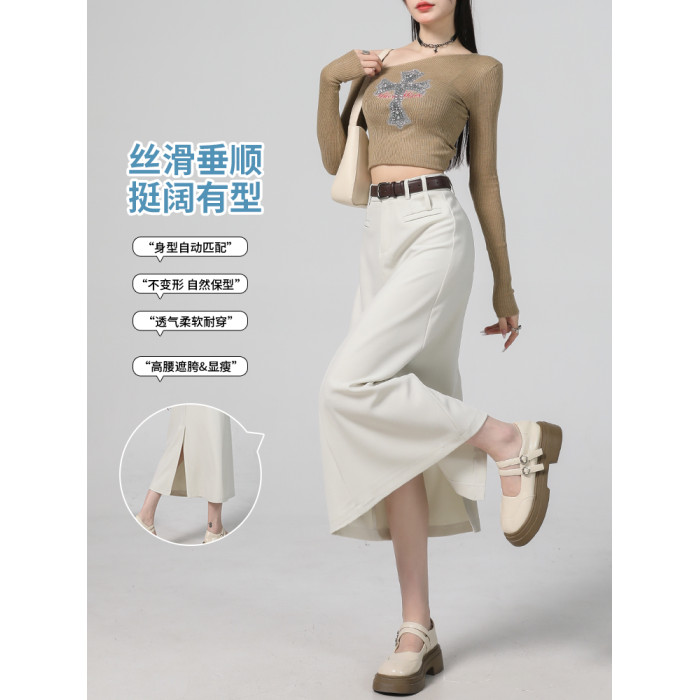 拉夏貝爾咖色開叉半身裙女春夏2025新款高腰遮胯a字中長款西裝裙