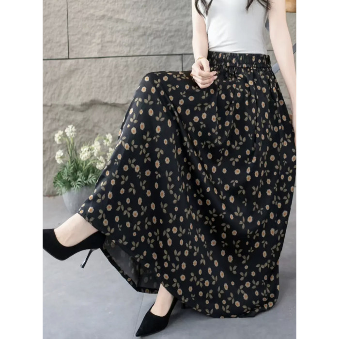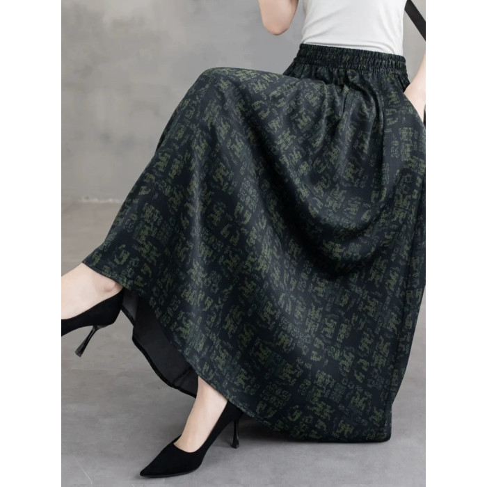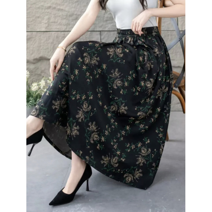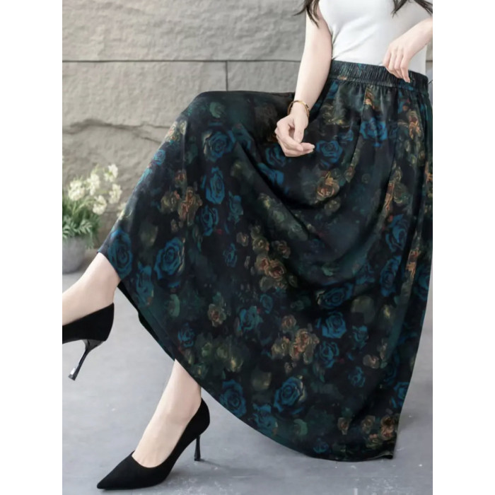 2025春夏原創高品質時尚印花裙氣質半身裙長裙 垂感顯瘦A字大擺裙
