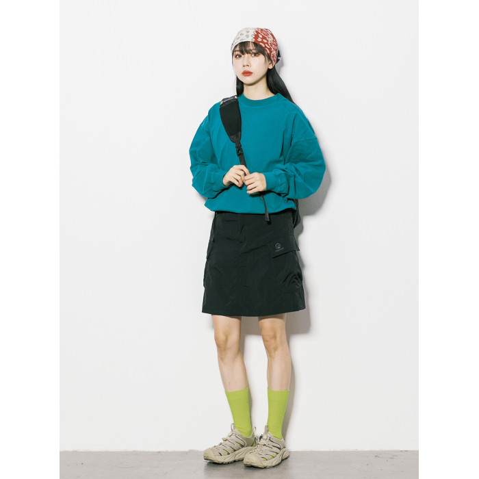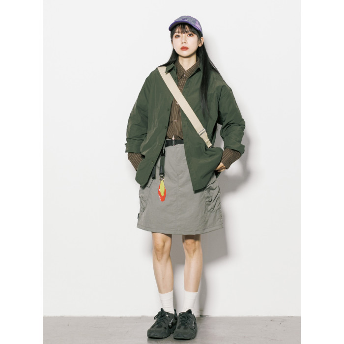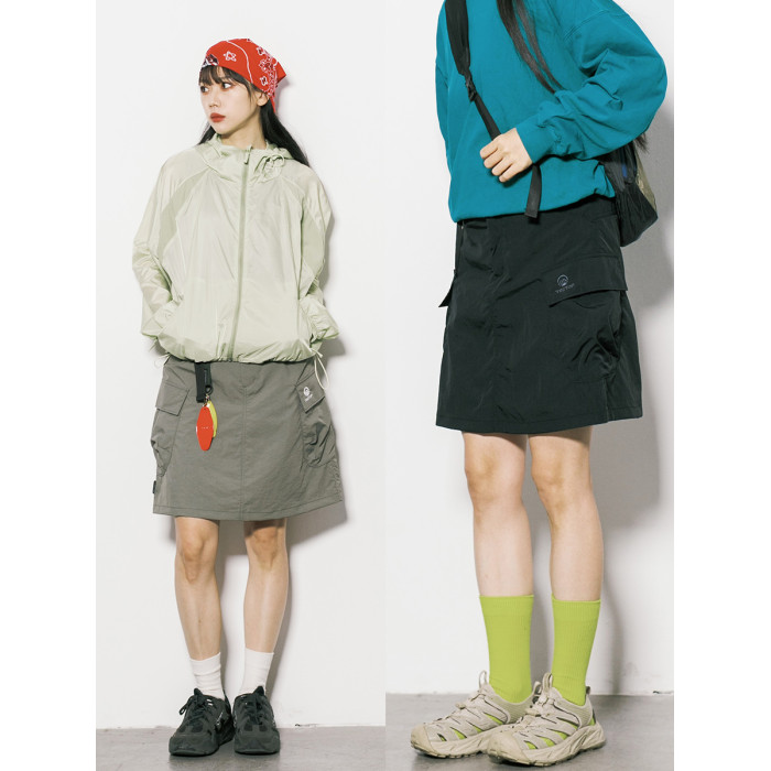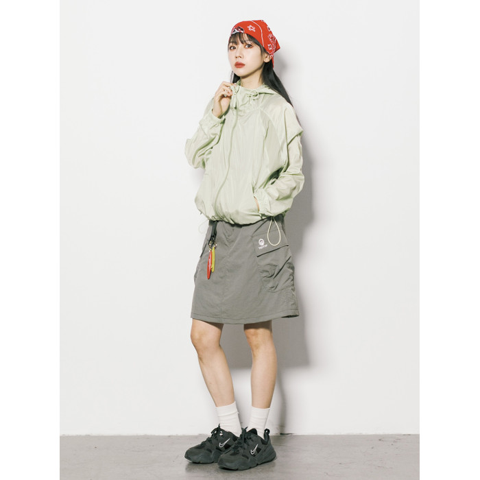 RCDB高腰運動休閒工裝裙女小衆大口袋下擺抽繩設計a字半身短裙子