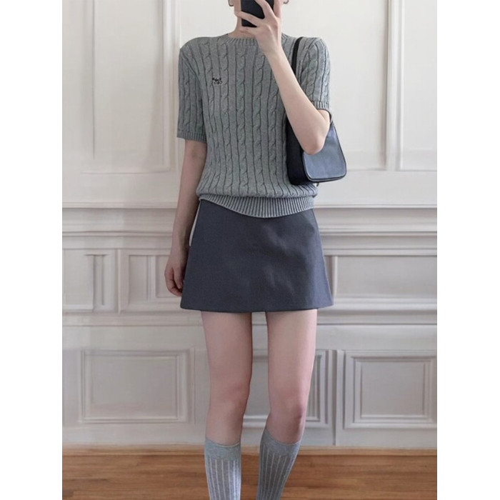 Basic House/百家好灰色西裝短裙女2025夏季新款學院風打底A字裙