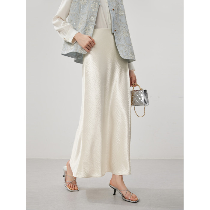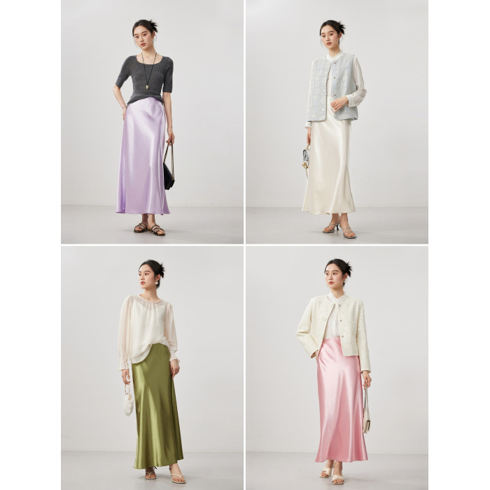米家好品質 2025新款女光澤感緞面極簡優雅純色百搭松緊腰半身裙