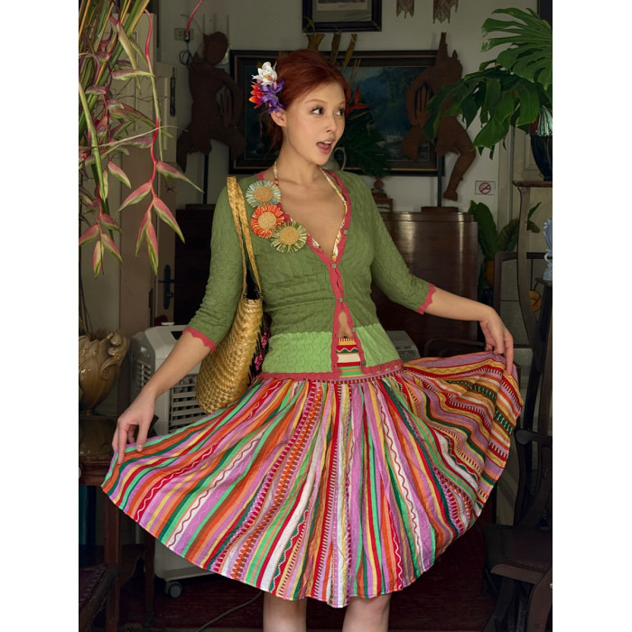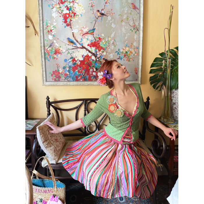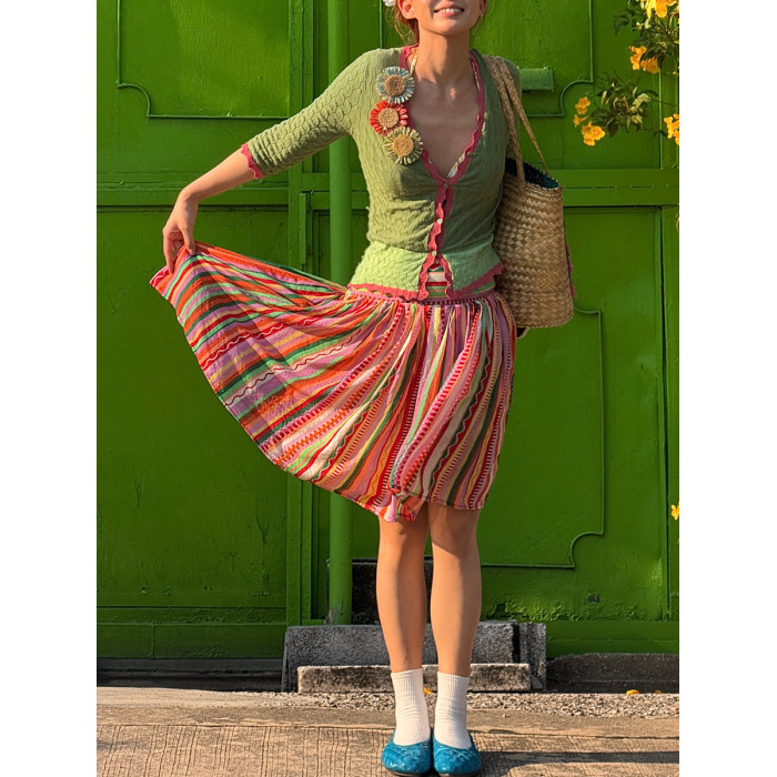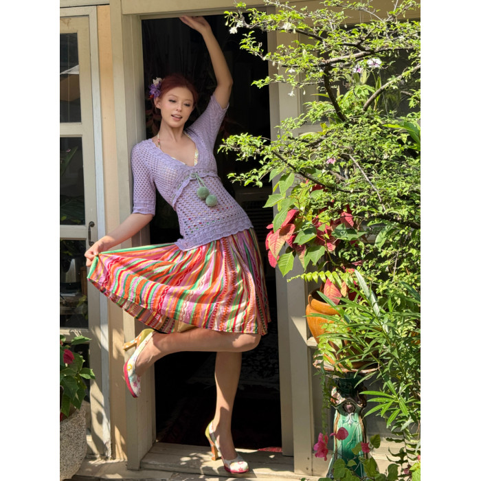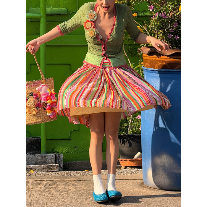 安妮的盔甲 設計師原創復古彩色條紋半身裙薄紗小衆不規則半裙