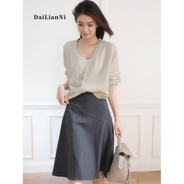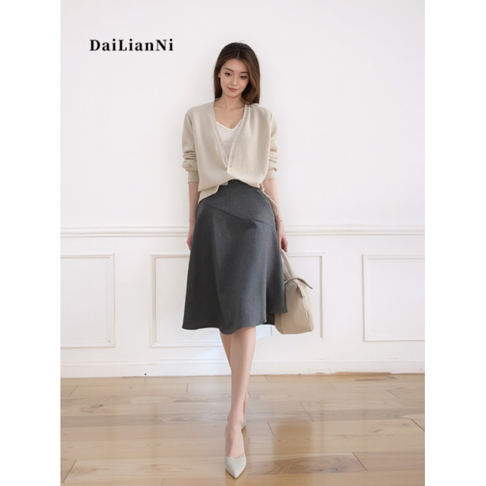高級灰半身裙(60°黃金斜裁顯瘦設計)