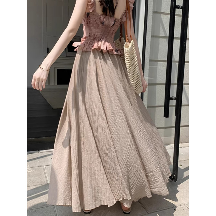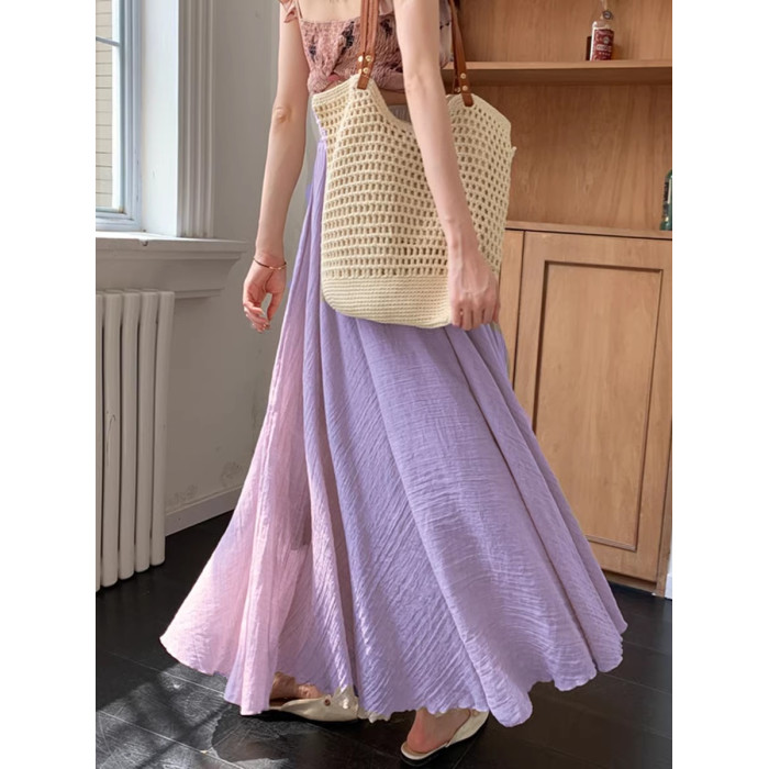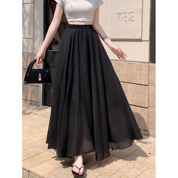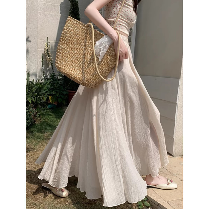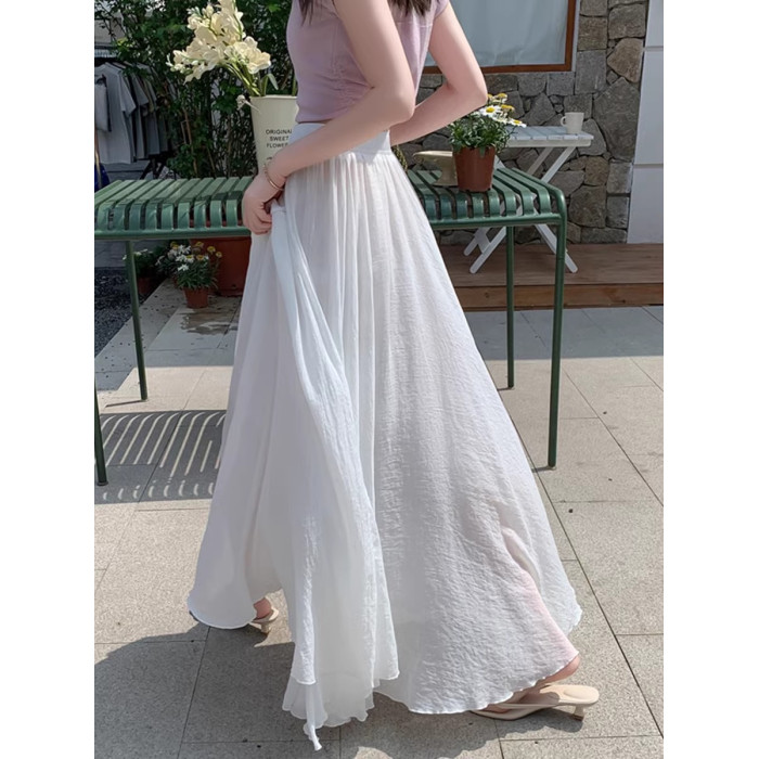 棉麻半身裙女夏季2025新款遮胯顯瘦飄逸拖地長裙超大裙擺a字繖裙