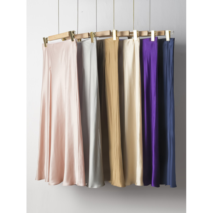 升級版2025重磅緞面純色桑蠶絲真絲斜裁修身半身裙魚尾長裙松緊腰