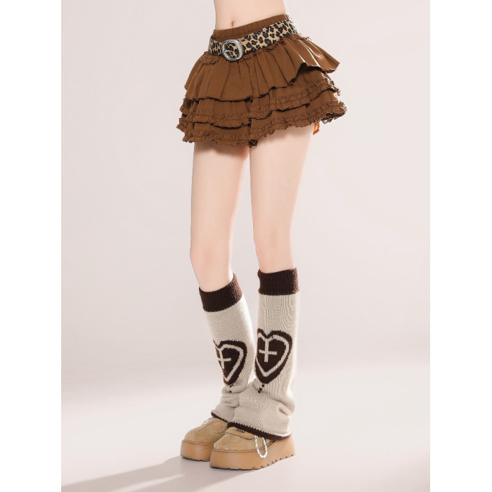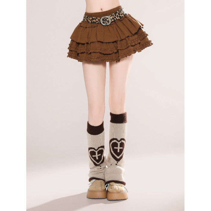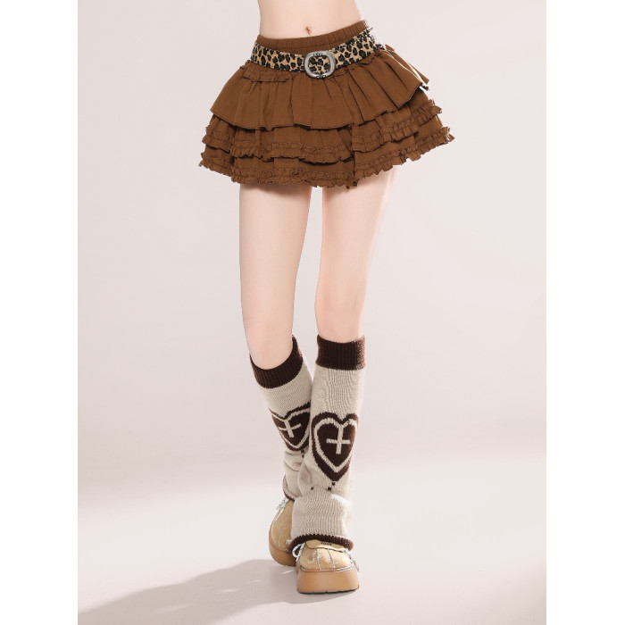 尋喜XUNXI 美式復古木耳邊蓬蓬蛋糕裙女夏季辣妹高腰顯瘦短裙裙子
