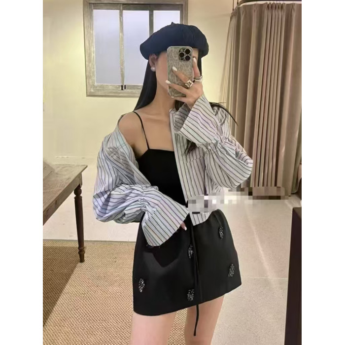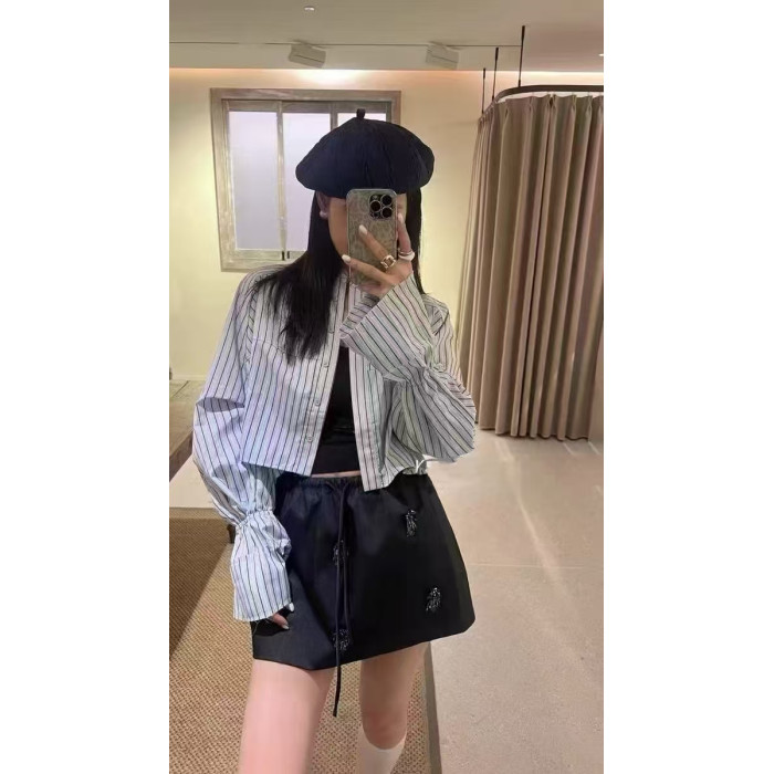 夏季穿搭抽繩松緊腰釘珠花短裙歐貨夏款新品防走光百搭純色短褲裙