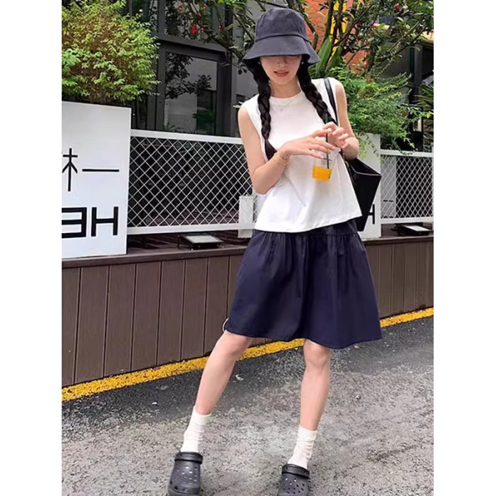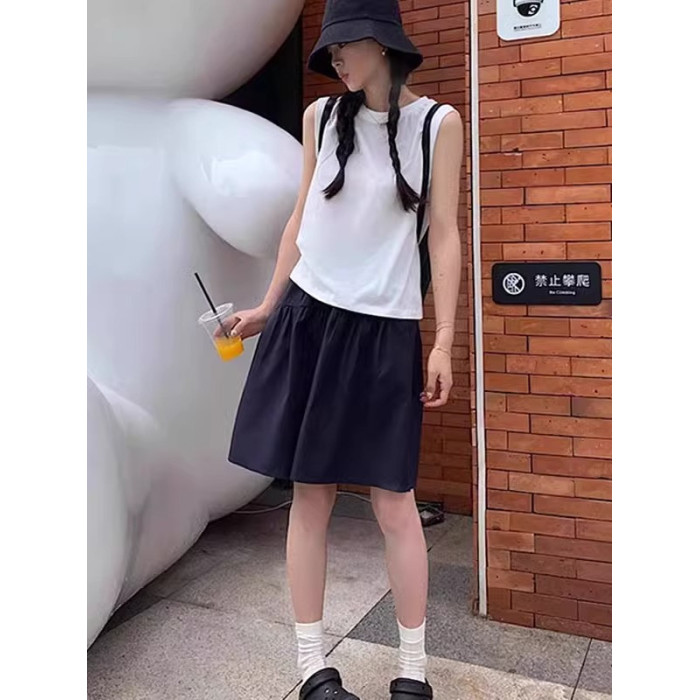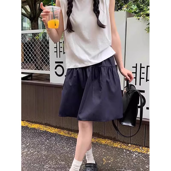 藏青色半身裙女夏季新款大碼胖mm高腰顯瘦a字短裙工裝休閒五分裙