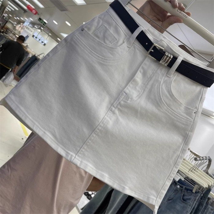 白色牛仔短裙年夏季新款高腰水洗百搭顯瘦彈力緊身A字包臀裙