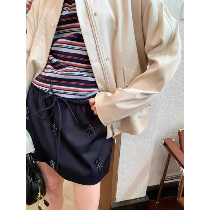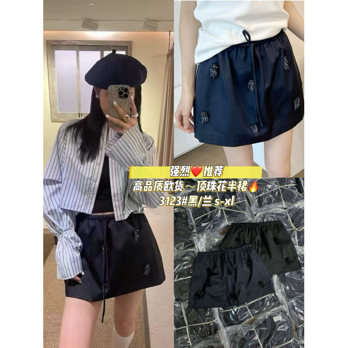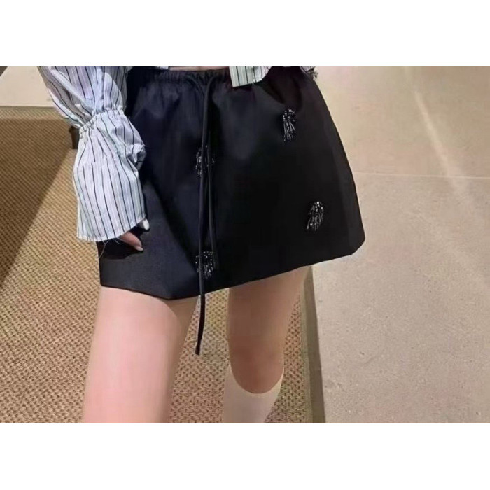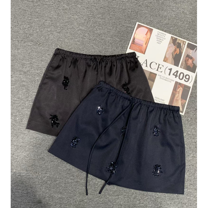 歐洲站設計師款短褲裙2025夏季新品復古甜酷重手工釘珠花朵短裙女