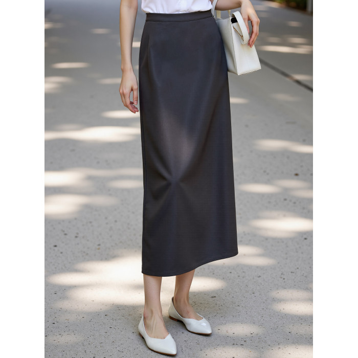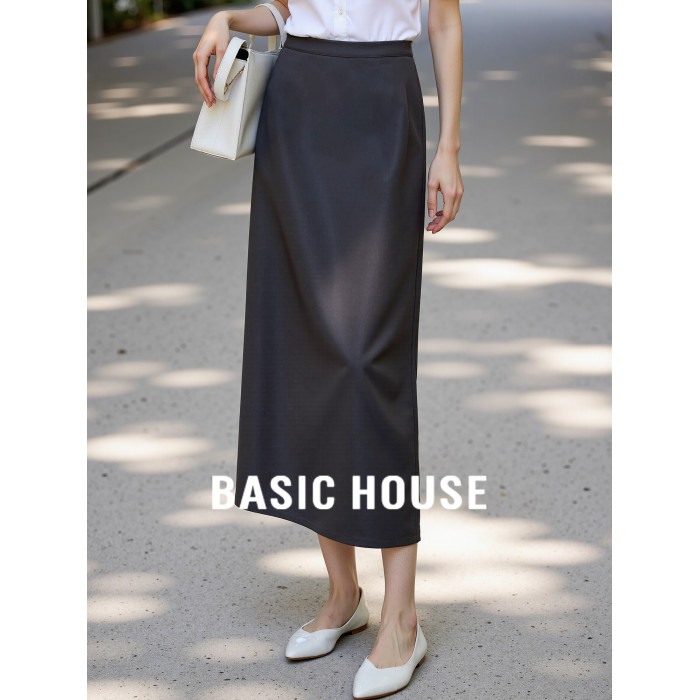 Basic House/百家好通勤簡約灰色西裝半身裙女夏季中長高腰包臀裙